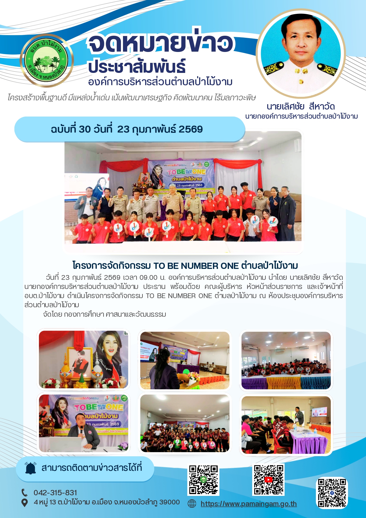 โครงการจัดกิจกรรม TO BE NUMBER ONE ตำบลป่าไม้งาม
