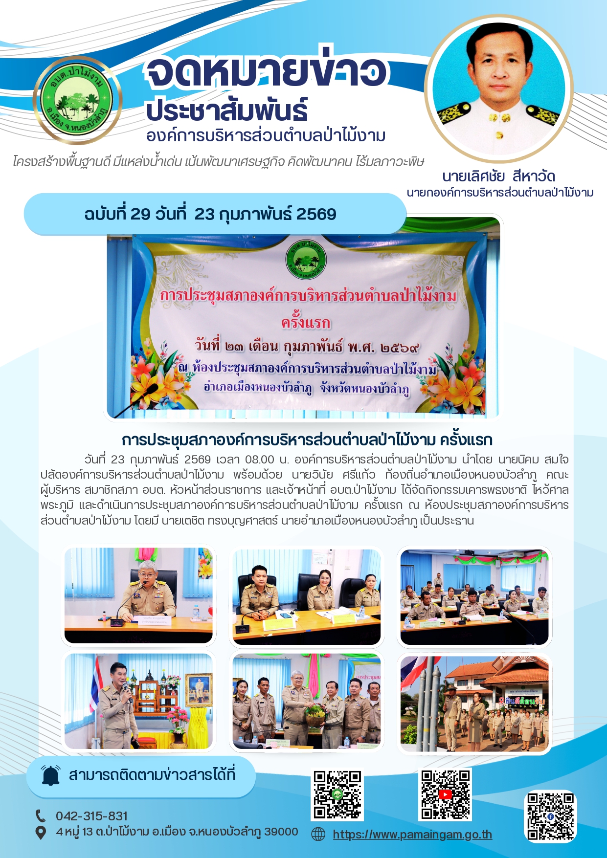 การประชุมสภาองค์การบริหารส่วนตำบลป่าไม้งาม ครั้งแรก