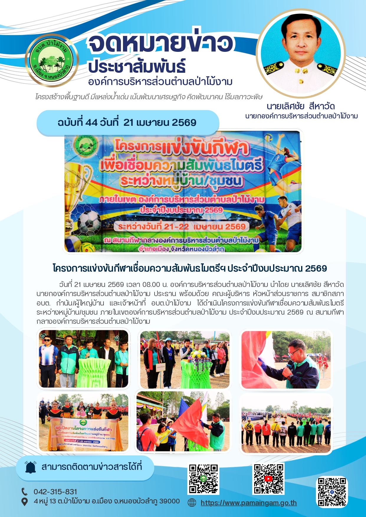 โครงการแข่งขันกีฬาเชื่อมความสัมพันธไมตรี ระหว่างหมู่บ้าน/ชุมชน ภายในเขตองค์การบร...
