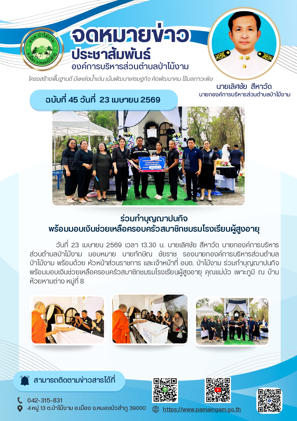 ร่วมทำบุญฌาปนกิจพร้อมมอบเงินช่วยเหลือครอบครัวสมาชิกชมรมโรงเรียนผู้สูงอายุ